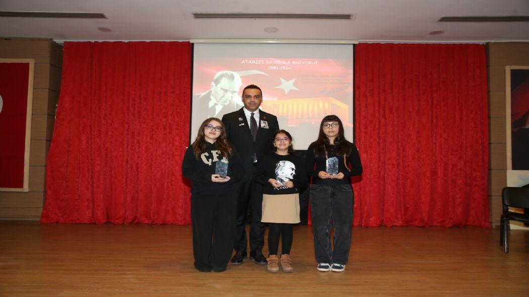 10 Kasım Atatürk’ü Anma Etkinlikleri kapsamında düzenlenen şiir yarışmasında dereceye giren öğrenciler, düzenlenen törenle ödüllerine kavuştu. Öğrencilere ödülleri; Garnizon Komutanı Albay Cemal Taylan, Çiğli Kaymakamı Fatih Görmüş ve Çiğli Belediye Başkanı Onur Emrah Yıldız tarafından takdim edildi. Tören sırasında öğrencilerin yaşadığı heyecan ve gurur, salondaki duygusal atmosferi daha da anlamlı kıldı.
