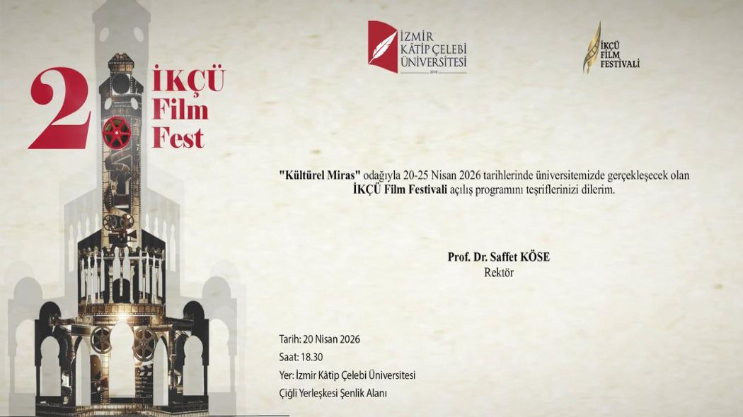 İzmir Kâtip Çelebi Üniversitesi tarafından bu yıl “Kültürel Miras” odağında sinemaseverleri bir araya getirmeye hazırlanan, sanatın ve genç yeteneklerin buluşma noktası 2. İKÇÜ Film Festivali 20 Nisan 2026 Pazartesi Günü Saat:18.30’da açılış programı ile başlıyor.