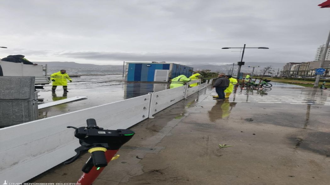 İzmir Büyükşehir Belediyesi’nin Kordon’da deniz taşkınlarını önlemek ve İzmirlilerin kıyı şeridini daha konforlu kullanmasını sağlamak amacıyla hayata geçirdiği geçici fırtına duvarı, kenti etkisi altına alan sağanak yağış ve fırtına sırasında deniz taşkınını engelledi. İzmir Büyükşehir Belediyesi Fen İşleri Dairesi Başkanlığı ekipleri, Meteoroloji Genel Müdürlüğü’nün uyarılarının ardından geçici fırtına duvarının kapılarını aktif hale getirerek olası risklere karşı önlem aldı.